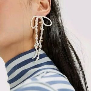 Chic shell bow earrings with cascading strands. Perfect for stylish flair.