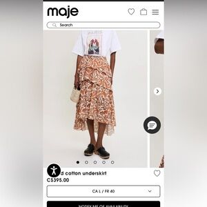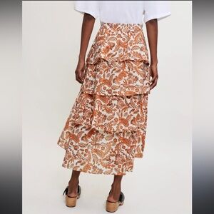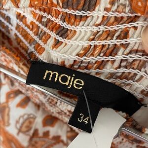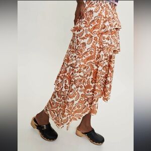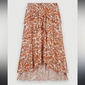 NWOT Maje paisley Orange and Cream printed cotton High Low stretchy Skirt as is