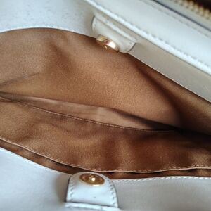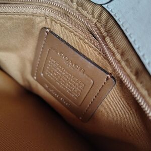 Elevate your style with this Coach multicolor striped bag. Perfect for any occasion, it features a vibrant design with shades of white, blue, purple, and tan. A must-have accessory for fashion-forward individuals. SHOULDER STRAP NOT INCLUDED.