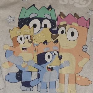 Adorable Bluey sweatshirt for kids, featuring a playful design on a white background. Perfect for everyday adventures.
