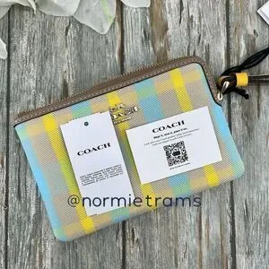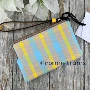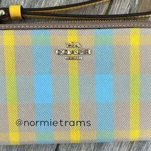 Coach Corner Zip Wristlet With Plaid Print Wallet Bag Purse