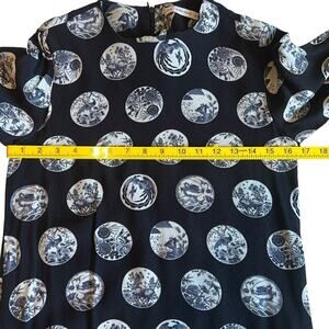 & Other Stories Women's Asian Lunar Print Mini Dress Quarter Sleeves Blue Sz 2