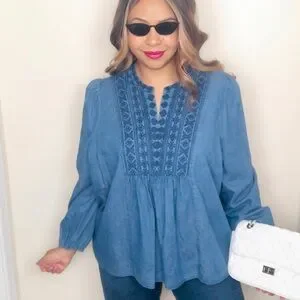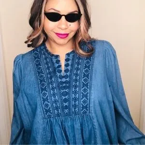 SALE 🔥 FALLS CREEK 3X Denim Blue Embroidered Boho Western Long Slv Plus Peasant