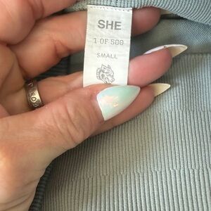 High-waisted seamless fit with a smooth, supportive feel. Fabric has good stretch and structure. Logo detail on leg.