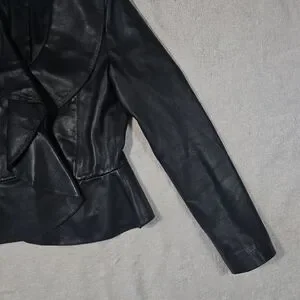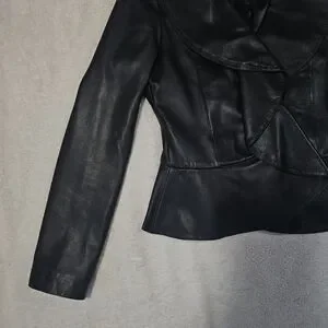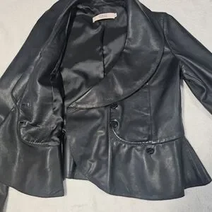 This elegant black women's jacket offers a sophisticated look for any occasion. Perfect for adding a touch of class to your wardrobe. excellent condition.