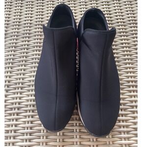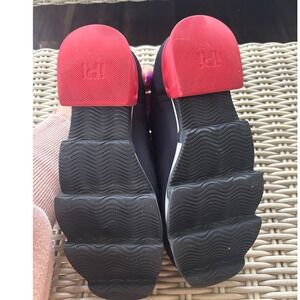 iRi Wes Black and Red Platform Sneakers. Size 38 or size 8. Slight wear on bottom of heel and tip of toe as noted in photo otherwise excellent used condition.