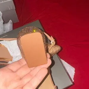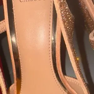 Shimmering gold heels with a chic slingback design. Perfect for adding glamour to any outfit.