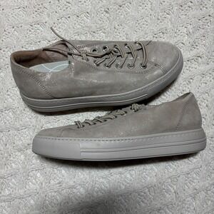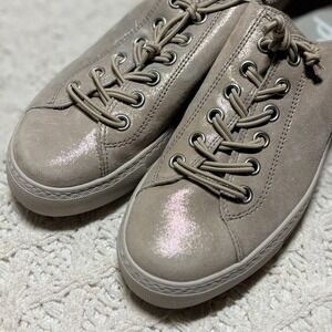 Paul Green Genuine Leather Suede Taupe Shimmer Solid Platform Lace Up Sneakers US 8.5