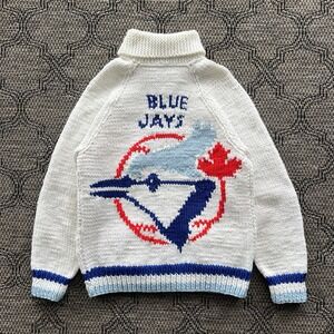Vintage Blue Jays Cowichan Men's Medium White MLB Acrylic Hand Knit Cardigan