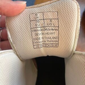 Stylish white ankle boots. Features heart-shaped buckles. Chunky sole for added height.