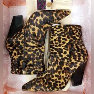NWT Tory Burch Authentic Lila 90MM Ankle Bootie Calf Hair Barbados Leopard Size 6M