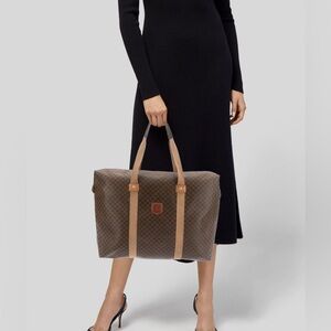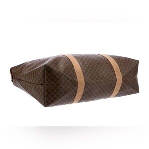 This vintage Celine tote features the classic monogram pattern with leather trim and gold-tone hardware. The spacious interior includes a single zipper pocket and a top zip closure for secure storage. Made in Italy, this tote is both stylish and functional.