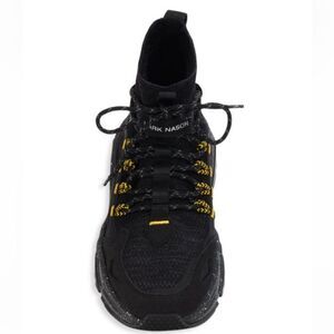 From the Mark Nason collection. These suede-trimmed sock sneakers are grounded on chunky soles so they feel a little more refined. Crafted with a high-top silhouette, this pair is fitted with cushioned soles and a lace-up vamp for a close fit.