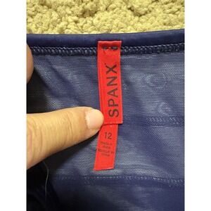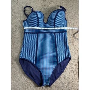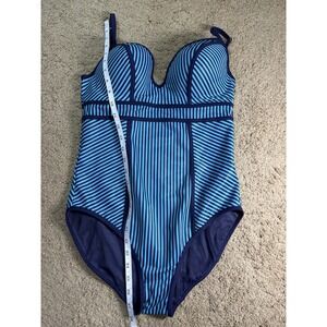Spanx One Piece Swimsuit Women 12 Built in Bra Navy Stripe Adjustable Straps