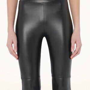 Finished with a seam detail above the knee, these vegan leather leggings are flexible in length and move with your body for all day comfort. New with Tag. Never Worn. Perfect Condition.