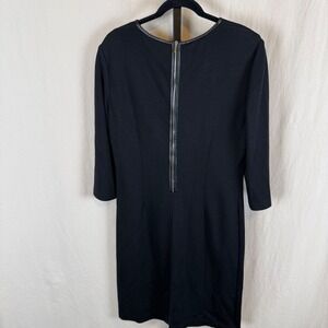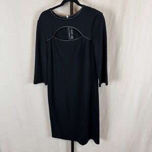 St. John Black Wool Blend Knit Dress with Cutout Leather Detail Size 12