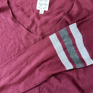 Hippie Rose Slouchy Oversized Long Sleeve top football stripe sleeves burgundy medium