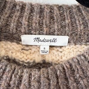 Wool blend sweater, boxy and cropped fit. Generous size small, would fit a medium-large (esp if you have a small chest).