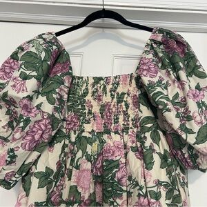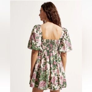 NWT size large pink/purple and green floral Emerson Poplin puff sleeve mini dress from Abercrombie & Fitch. Smocked back for stretch. Has pockets.