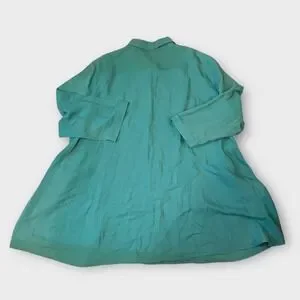 Lafayette 148 New York Women Tunic Silk Linen Top Button XL Teal Green Lagenlook