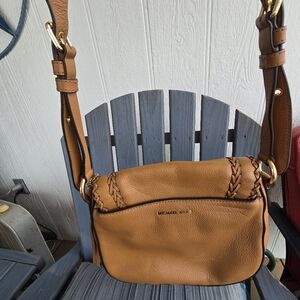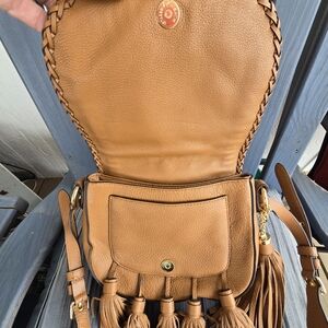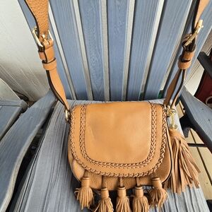 Michael Kors Moroccan Tan Leather Saddle Bag w/ Twisted & Tassle Accents 8x9.75