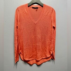 Chic coral long sleeve Silk blend knit by Ralph Lauren. Features a flattering V-neck design. Ideal for versatile styling. Excellent condition never worn.