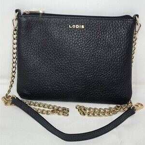 Lodis Emily 5 In 1 Convertible Black Pebbled Leather Chain Strap Crossbody Bag