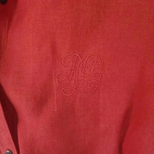 Lauren Ralph Lauren Button Down Shirt Women's 1X Orange Red Embroidered Logo.