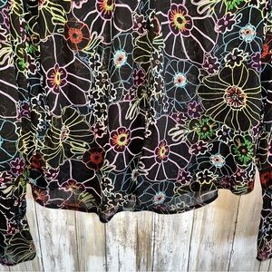 NWT Steve Madden Cameila Black Sheer Floral Button Blouse