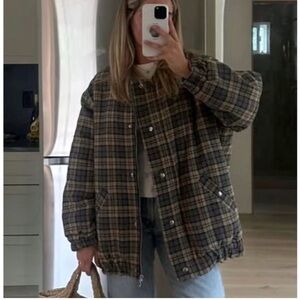 Chic plaid bomber jacket by Sezane. Features a stylish design with a classic plaid pattern. Ideal for casual wear.