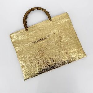 Vintage Mid Century Shiny Gold Lame Handbag Tote