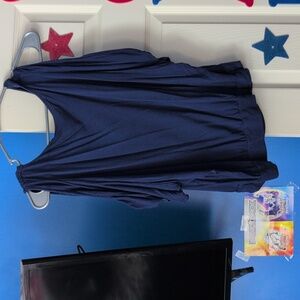 Jennifer Lopez Dark Blue Draped Cold Shoulder Blouse