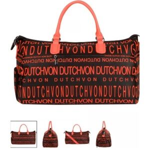 Bold Von Dutch travel bag with vibrant orange accents. Perfect for stylish journeys. NWT STILL IN ORIGINAL PACKAGING