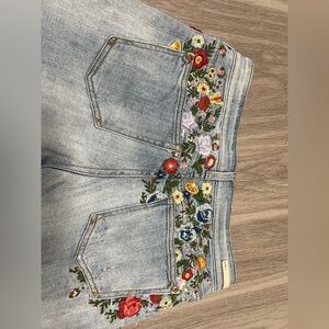 Pilcro the Letterpress, from Anthropologie, Embroidered Slim Boyfriend Fit, Jean Shorts. Size 25 (size 2). Beautiful embroidered flowers and citrus! Great condition!