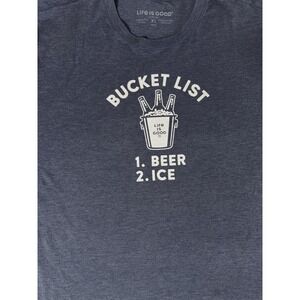 Funny Retro Bucket List Life Is Good T-Shirt Tee Size XL Blue Soft Cotton EUC