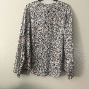 St. John's Bay Multicolor Floral Blouse 2x Button Up Long Sleeve Blue Green Ivor