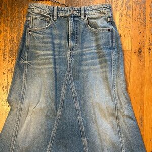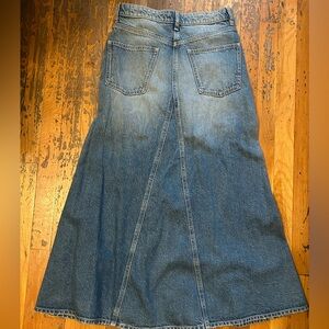 Stylish denim maxi skirt with back pockets. Perfect for casual wear.
