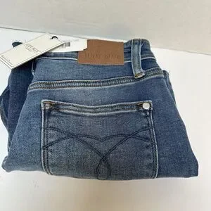 Judy Blue NWT High Waist Raw Hem Denim Shorts Size Medium Style #15277. In new condition with tags attached. Made of 93% cotton, 5% polyester and 2% spandex. Lying flat, measures approximately 13 inches across the front of waist, 5 inches in the inseam and about 11 inches in the rise.