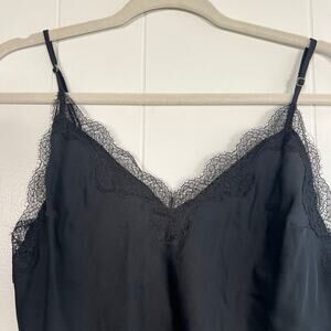 NWT Victoria's Secret Black Satin Lingerie Cami Top with Lace Trim Size L