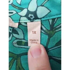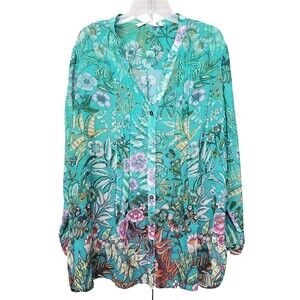 This is a Soft Surroundings Chiffon Pintucked Luau Garden Semi-Sheer Button-Up Tunic Sz 1X
