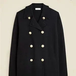 Sophisticated navy pea coat shaped sweater blazer by J. Crew. Features striking gold buttons. Ideal for stylish outings.
