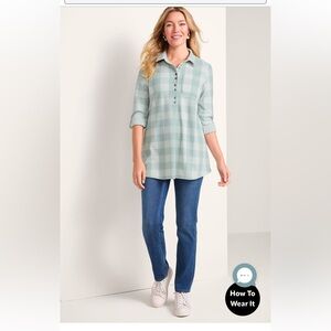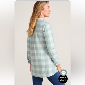 Soft Surroundings Mad About Plaid Jadeite Buffalo Check Comfy Roll-Tab Tunic M