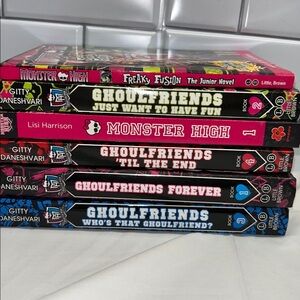 Mixed bundle of six Monster High books including two hardcover titles and four paperback novels. These stories feature fan-favorite characters, spooky-cute adventures, and vivid artwork that Monster High readers love. Ideal for collectors, gifts, or anyone building their MH library.