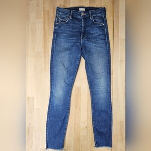 MOTHER High Waisted Looker Ankle Fray Blue Jeans Women's Cotton Blend 26