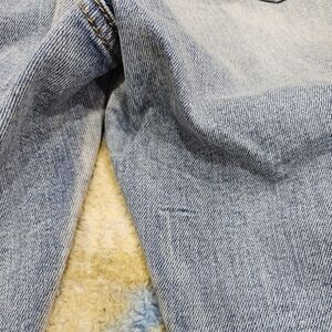 Flaws: red line on leg, thread pull on inner thigh. Seams a bit warped from age and washing. See photos.