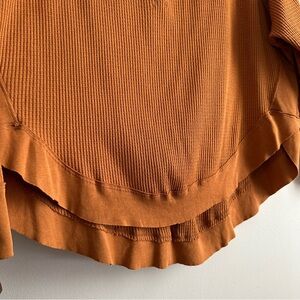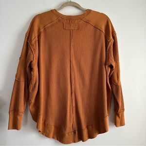 "So slouchy and effortless in an oversized silhouette, this timeless thermal from our We The Free collection is featured in a classic waffle-knit fabrication with raw V-neckline and contrast trimming for added dimension."