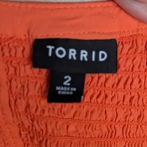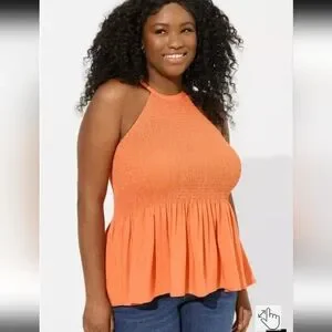 Torrid Vibrant Orange Challis Smocked Perplum Tank Top