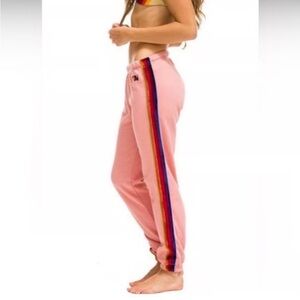 Aviator Nation Pink Joggers with Rainbow Velvet Stripes