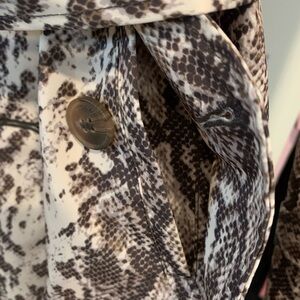 Bold snake print design. Double-breasted style. Belted waist for a tailored fit. Two front button pockets, belt. NWT