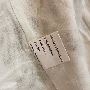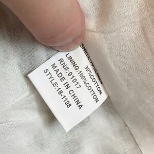 This Solitaire blazer is a size medium. It is a cotton/linen blend with a palm pattern. It has a one button closure. It has two front functioning pockets and a small slit in the back. Has no stains, holes or pulls.